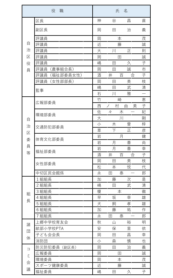 令和7年度自治区役員名簿