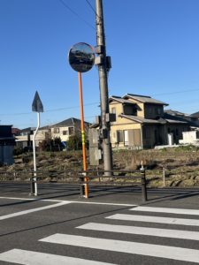 昨年から申請していました船場の交差点にミラーが設置されました。今までご心配をおかけしておりましたが、ミラーで確認しながらより安全に出入りをお願いをします。